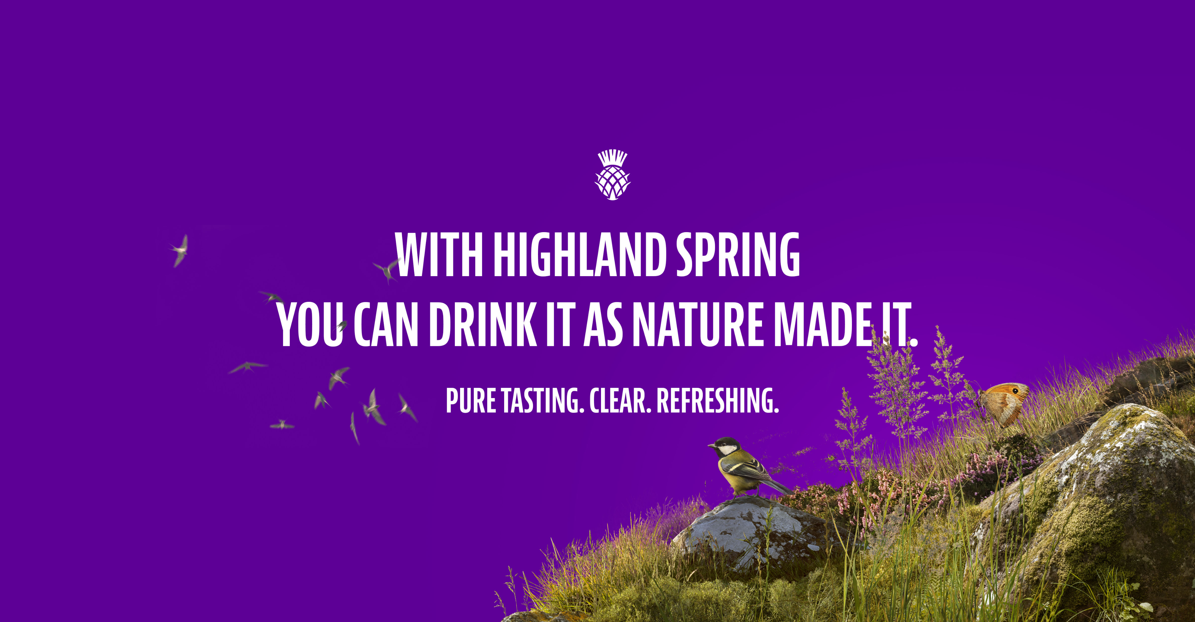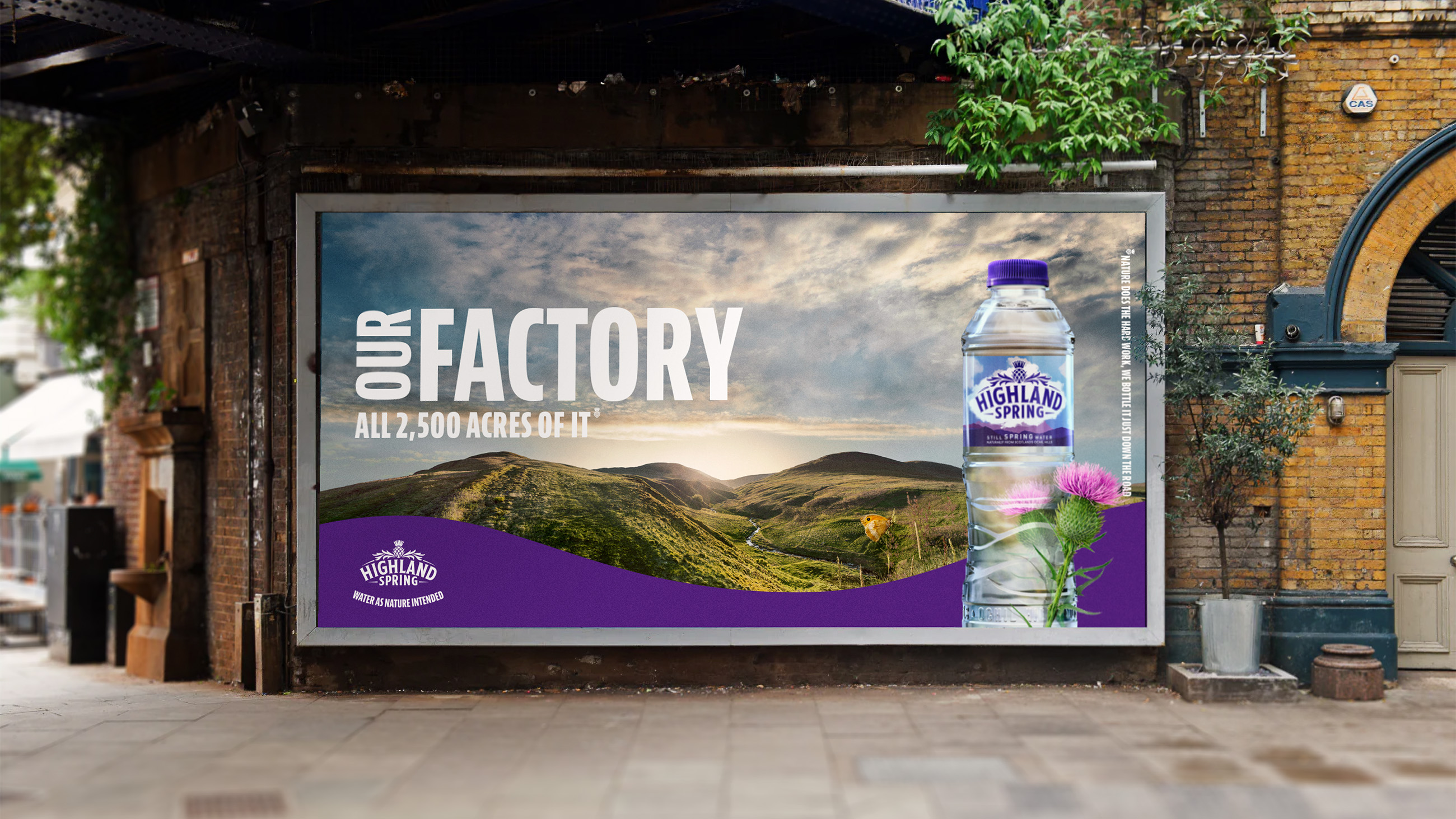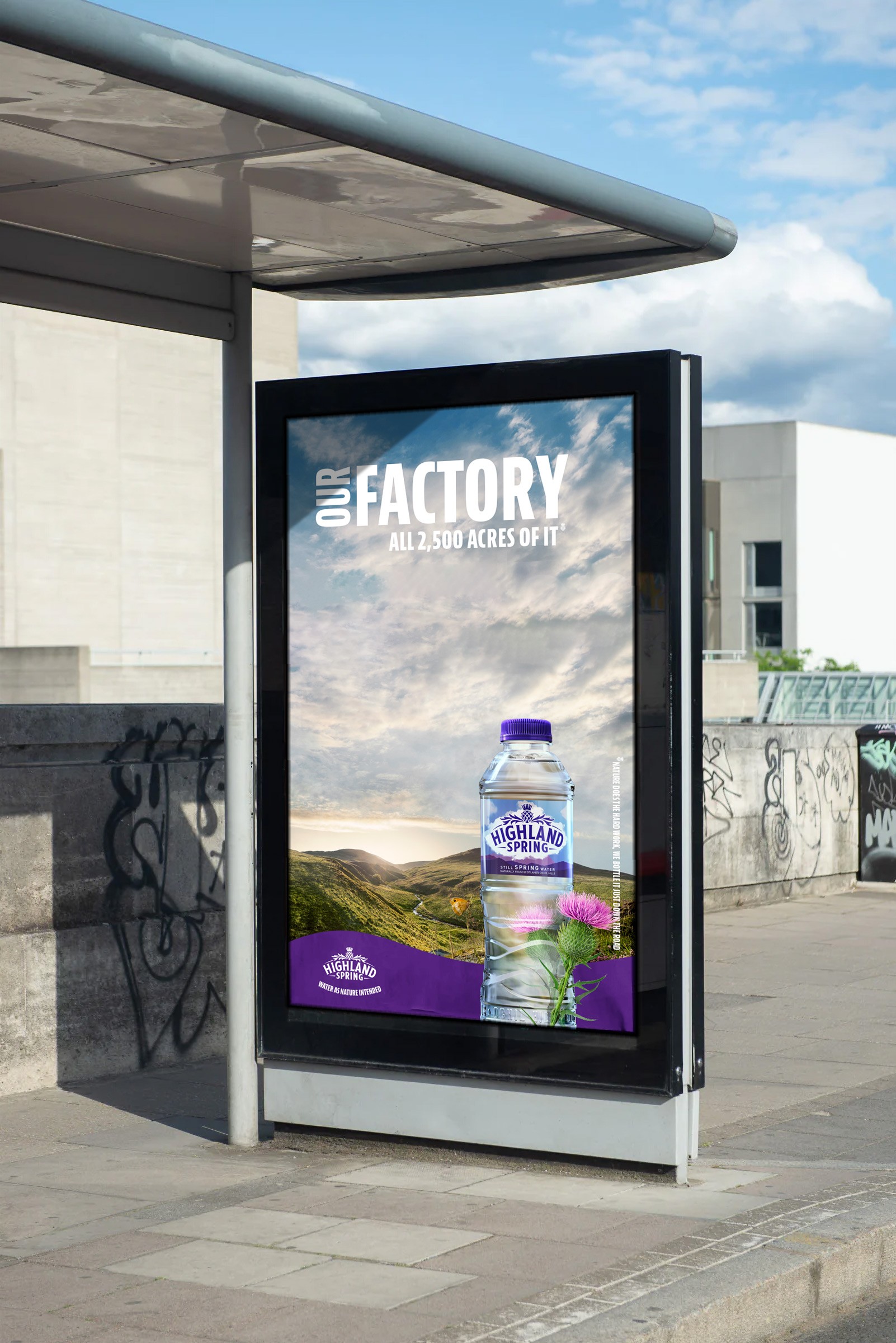A beloved water brand in need of a reboot. I worked on the brand refresh for Highland Spring which also incorporated an OOH brand activation campaign across central London. The strategic approach looked to celebrate Highland Spring’s origins across 2500 acres of rugged Scottish land in the Ochil Hills. The strapline ‘Water as nature intended’ was created to reinforce the brand’s approach to naturally sourced water directly from carefully managed Scottish land.